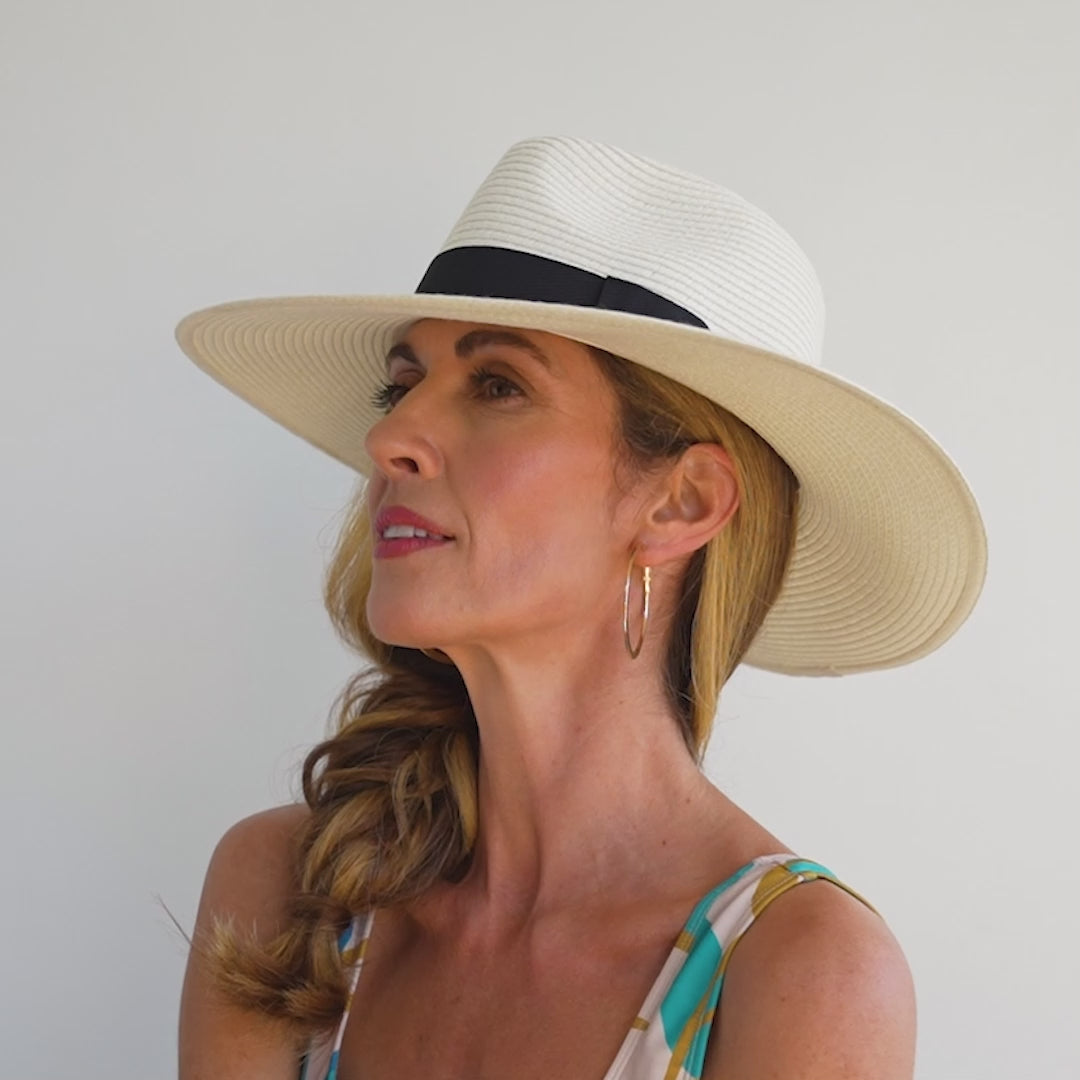 Make a statement in this elegant and timeless Fiona Fedora summer hat. Featuring a chic bow detail and wide brim, it offers stylish sun protection all season long. Made with innovative Flexibraid material, it's crush-resistant, packable, hand washable, and perfect for sunny holidays.