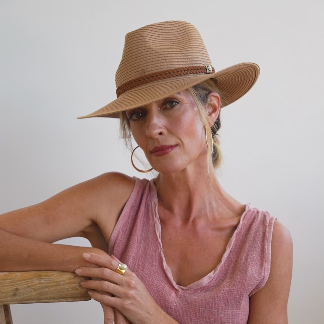 The Gerry Fedora is a lightweight, travel-ready sun hat that blends practicality with style. Made from durable Flexibraid, it holds its shape, resists crushing, and offers UPF50+ certified protection—blocking 97.5% of harmful UV rays. A vegan suede band and stitched ribbon loop add a refined, conscious finish, making it the perfect hat for city breaks, hikes, or everyday wear.